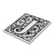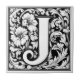 A black and white vector illustration of the letter in an elaborate mediaeval style, created in the style of Albrecht Dürer. The design is a square with a large central floral motif surrounded by symmetrical geometric patterns and swirls.