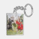 This square keychain, zip pull features my watercolour painting of two mediaeval knights engaged in an impromptu joust, infront of a castle. This painting was based on a real life joust staged at Chilham Castle Kent.
