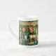 Bone China Mug featuring William Morris’ tapestry Verdure with Deer and Shields (1891-1894). A verdant scene of deer drinking from a pool of water and eating from leaves of trees in a green forest. Above them hang the shields of the Knights of the Round Table. A magnificent gift for Arthuriana enthusiasts and Victorian art collectors.