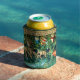 Can Cooler featuring William Morris’ tapestry Verdure with Deer and Shields (1891-1894). A verdant scene of deer drinking from a pool of water and eating from leaves of trees in a green forest. Above them hang the shields of the Knights of the Round Table. A magnificent gift for Arthuriana enthusiasts and Victorian art collectors.
