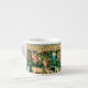 Espresso Cup featuring William Morris’ tapestry Verdure with Deer and Shields (1891-1894). A verdant scene of deer drinking from a pool of water and eating from leaves of trees in a green forest. Above them hang the shields of the Knights of the Round Table. A magnificent gift for Arthuriana enthusiasts and Victorian art collectors.