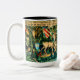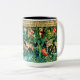 Coffee Mug featuring William Morris’ tapestry Verdure with Deer and Shields (1891-1894). A verdant scene of deer drinking from a pool of water and eating from leaves of trees in a green forest. Above them hang the shields of the Knights of the Round Table. A magnificent gift for Arthuriana enthusiasts and Victorian art collectors.