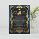 Mediaeval Knights Jousting Birthday Tournament Renfaire Invitation Gold Foil Glitter Gold Black and Blue Goth