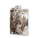 The jousting knights on horsback is one of my favourite paintings, it's titled "The Four Knights of The Forest Festival." I painted it from a photograph that I took when I was at the Forest Festival on Chingford Plains in the UK. The forest festival is held every year and it celebrates everything to do with historic Epping Forest. On two of the years that we attended we were lucky enough to see the re-enactment of a traditional joust between four knights on horseback, each knight is representing his "kingdom." I captured the photograph as the knights were parading around the jousting area and I couldn’t wait to paint it. The Black Knight went on to achieve a glorious victory over the other three knights. I think this original black and white realist mediaeval art picture looks great on this quality flask, I'm sure this historic art image will make an unusual and unique gift for someone special or perhaps you just want to treat yourself to this one of a kind original jousting knights hip flask. This is a customisable hip flask, you can personalise it by adding your own text. The original painting of the four jousting knights on horseback is painted in soft pastels and is titled "The four knights Of The forest Festival." This image has been digitally enhanced to give it a sepia effect.