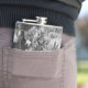 The flask itself is fine. It’s a cheap flask, obviously bought in bulk, however am prepared to overlook that. Given that it is a personalized item, I would have liked to have seen gift boxing instead of the generic packaging. Terrible printing, and/or quality. It’s a cheap, tacky vinyl. It is not cut straight and is also applied in a way that it is overhanging the bottom, causing the glue to catch on items and it will eventually roll and tear, damaging the wrap.