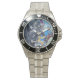 Has heft and feel of expensive stainless steel quartz watches. Good band with safety catch.  I removed links, which is easy because engraved arrows show direction to push the linking pins. As always by this seller, the image (a railroad logo) is a perfect reproduction of my emailed image, and is precisely spaced and aligned.