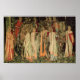 Poster featuring William Morris’ tapestry The Arming and Departure of the Knights (1891-4). The Knights of the Round Table sit on their horses in a forest outside a castle. Beautiful women hand the knights their weapons and shields. A wonderful gift for Arthuriana enthusiasts and Victorian art collectors.
