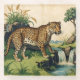 Mediaeval Leopard with Waterfall Nature Art Glass Coaster