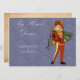 Vintage royal style invites featuring an illustration of a finely dressed noble holding a shield with a crown.