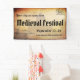 Mediaeval Festival or Renaissance Fair type event banner with your custom information. Antique fonts on a burnt parchment background with a knight and dragon graphics. Edit the text for your event.