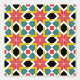 This example is a mediaeval geometric pattern design. It consists of red cross with mustard yellow green blue an black in a square tile pattern. This style is from the Romanesque period.