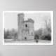 Monochrome mediaeval tower landscape on a 12" x 8" Archival Heavyweight Paper (Matte).