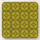 A mediaeval pattern design in yellow and black. It consists of yellow lilies in a square tile pattern. This style is from the Romanesque period.