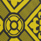 A mediaeval pattern design in yellow and black. It consists of yellow lilies in a square tile pattern. This style is from the Romanesque period.