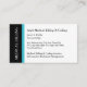 Modern medical billing and coding business cards in a minimal design that includes a black, white, and blue background, simple organised text layout you can personalise, and designed for a business that helps doctor offices and hospitals manage their receivables and billing.