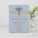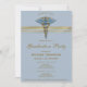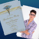 Medical Blue Caduceus Gold Stripe Graduation Photo Invitation
