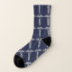 All over print socks are navy blue and have a grey caduceus symbol overlayed on each side