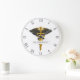 Medical Caduceus Gold Black Wings Elegant Classy Large Clock