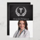 Black /Charcoal grey background with weathered look and white medical caduceus symbol with a laurel wreath framed around it. A lovely gift for the medical school or nursing school or other medicine and health services related graduate student or practicing doctor. All Designs Copyright © www.CustomInvitesOnline.com