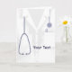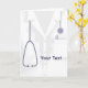 A graphic medical coat design on a custom greeting card. The card has text templates for you personalisation. ©2013charmainepaulson
