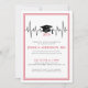 This heartbeat-themed graduation invitation features a bold and modern design with striking red accents. A sleek double-line frame in red outlines the edges, adding a refined touch. The EKG heartbeat line in the centre is complemented by a graduation cap displaying "Class of," with the graduation year below, making it a meaningful choice for celebrating a medical or nursing school graduate. A mix of black and red serif and modern typography enhances the stylish and contemporary look.