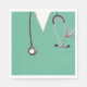 Creative medical themed party napkins for doctor graduation party, birthday or other celebration. Design features hospital scrubs with funny Swiss army knife in the pocket.