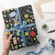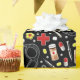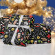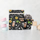 Creative doctor birthday gift wrap featuring healthcare supplies and flowers pattern on black background.