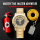 Medical gold shiny silhouette alert badge with a classic gold frame and golden numbers on this watch.