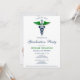 A modern and elegant interpretation of the classic caduceus symbol featuring a blue rod with snakes, green stylized wings, and a glass sphere with a green cross. All text can be easily customized to suit your celebration. The back is designed to showcase your photo, but it can also be removed if you prefer a clean, blank page. This eye-catching and professional design is perfect for announcing your medical graduation and inviting friends and family to celebrate this special milestone.