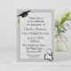 Graduation invitation for any branch of the medical field with stethoscope and black graduation cap on grey marbled background frame. Invitations come with envelopes and your choice of paper.