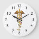 Very stylish medical insignia clock. Would look great on the wall of a doctor's office or waiting room. Change the background colour to suit any decor. Great gift for a doctor, nurse, paramedic, or anyone in the medical field.