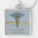 Medical Light Blue Caduceus Faux Gold Foil Stripes Key Ring