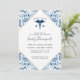 Elegant and modern Graduation invitation card. Elegant Classic blue invitation featuring beautiful watercolor blue foliage. Personalise it with your photo on bac.