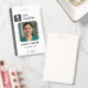 A modern medical ID badge template with a clean grey colorway, featuring space for your photo, name, job title, ID number, and custom logo. Designed to be versatile for medical technicians, lab staff, radiology teams, nurses, and hospital support employees. The back includes placeholders for a barcode, QR code, and lost and found contact information for added functionality and security. Perfect for hospitals, clinics, labs, and healthcare organisations that need customisable, professional staff identification.