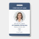 This professional physician identification badge features a clean minimalist design tailored for attending doctors and clinical specialists. The crisp white layout is bordered by solid navy blue bars at the top and bottom, providing a modern aesthetic that adheres to formal medical facility standards. It highlights the doctor name and role in a bold typographic hierarchy, ensuring immediate recognition in fast paced hospital environments.