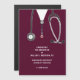 Creative doctor graduation announcement for medical school graduate featuring maroon scrubs and stethoscope art.