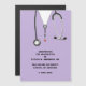 Creative doctor graduation announcement for medical school graduate featuring lavender scrubs and stethoscope art.