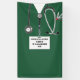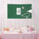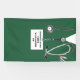 Creative medical school graduation congratulations banner decoration for doctor grad featuring unique green scrubs, stethoscope and funny Swiss army knife. To personalise edit text to add name of physician.