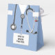 Creative doctor or nurse party favours featuring hospital scrubs, stethoscope and funny Swiss army knife. Edit text to customise.