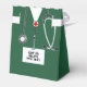 Medical-themed party or event favours for doctor featuring green hospital scrubs. Edit text to personalise for medical school graduation celebration or other healthcare event.