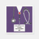 Creative doctor graduation party napkins featuring purple hospital scrubs and stethoscope art. Edit text to add doctor, nurse or physician assistant's name.