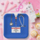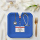 Creative med school graduation congratulations party plates for doctor graduate. Edit text to add doctor, physician assistant, or nurse's name to customise.