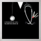 Creative medical school graduation party poster template for doctor graduate featuring black hospital scrubs. To personalise edit text to add name of physician or otherwise customise.