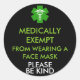 Medically Exempt From Face Masks Classic Round Sticker