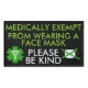 Please only display this badge if you are legitimately exempt from wearing a mask or other face covering in line with your local laws & guidelines. Wearing a mask where and whenever you are able helps to slow the spread and save lives.