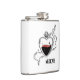The flask itself is fine. It’s a cheap flask, obviously bought in bulk, however am prepared to overlook that. Given that it is a personalized item, I would have liked to have seen gift boxing instead of the generic packaging. Terrible printing, and/or quality. It’s a cheap, tacky vinyl. It is not cut straight and is also applied in a way that it is overhanging the bottom, causing the glue to catch on items and it will eventually roll and tear, damaging the wrap.