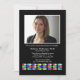 A unique, unisex invitation for a pharmacist's graduation celebration. The black background has a framed photo window and a ribbon of colourful capsules of medication. GraphicsFuel.com.