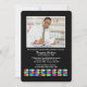 A unique, unisex invitation for a pharmacist's graduation celebration. The black background has a framed photo window and a ribbon of colourful capsules of medication. GraphicsFuel.com.