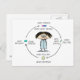 A funny cartoon of a medicated person wearing a nightgown and fuzzy slippers surrounded by a circle of pills. "Cures insomnia, causes upset stomach, cures upset stomach, causes itchy rash, cures itchy rash, causes depression, cures depression, causes insomnia." A humourous albeit depressing comic for anyone familiar with the circle of medication. Visit Jenn's Doodle World for more cartoon postcards and fun gifts.