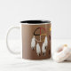 Native face and medicine wheels on a mug. Colours include red, yellow, black, white, gold and brown. Linda LaBow Wagner copyrighted works.